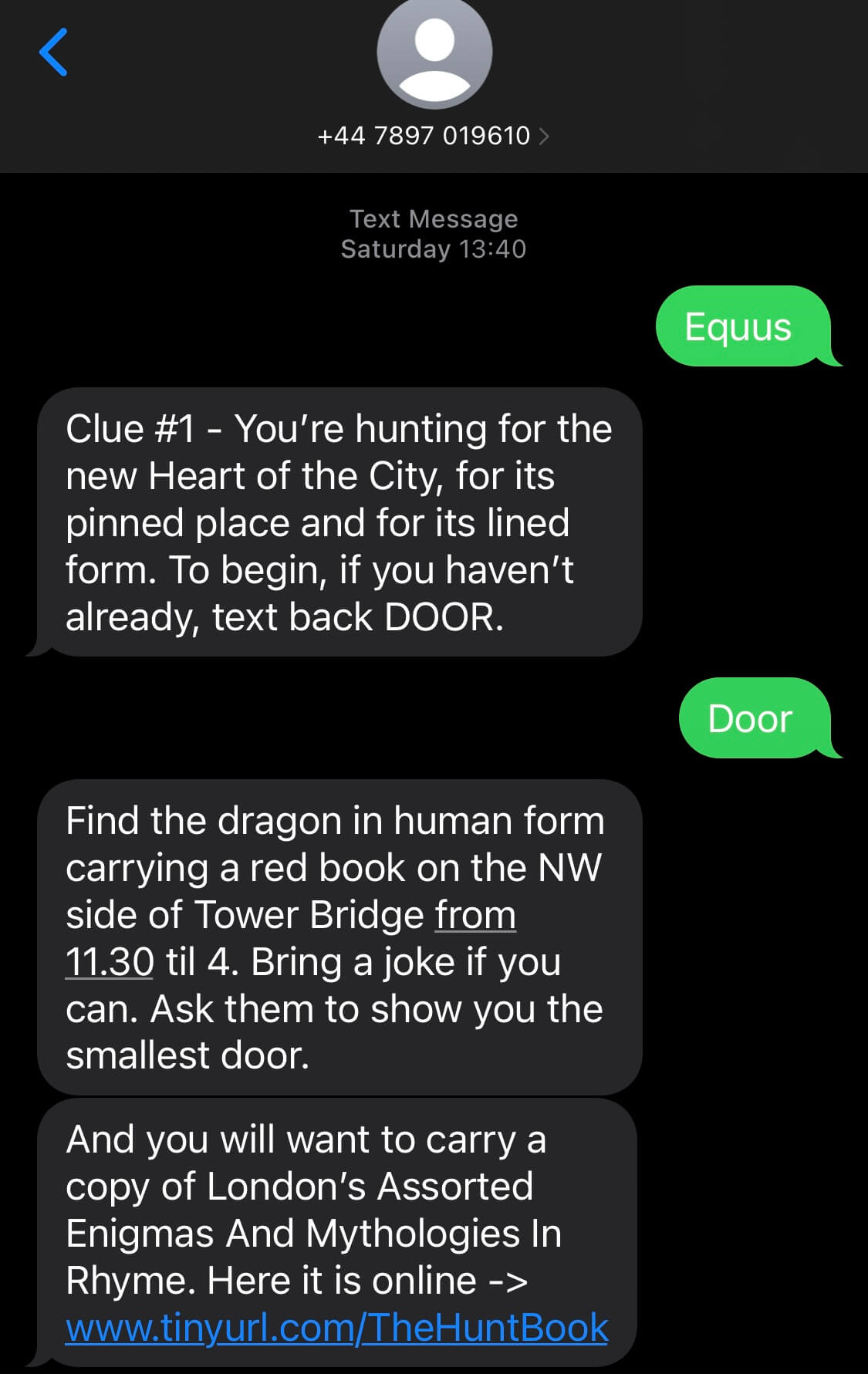 We eventually through trial and error found the word that needed to be texted and received our next clue.