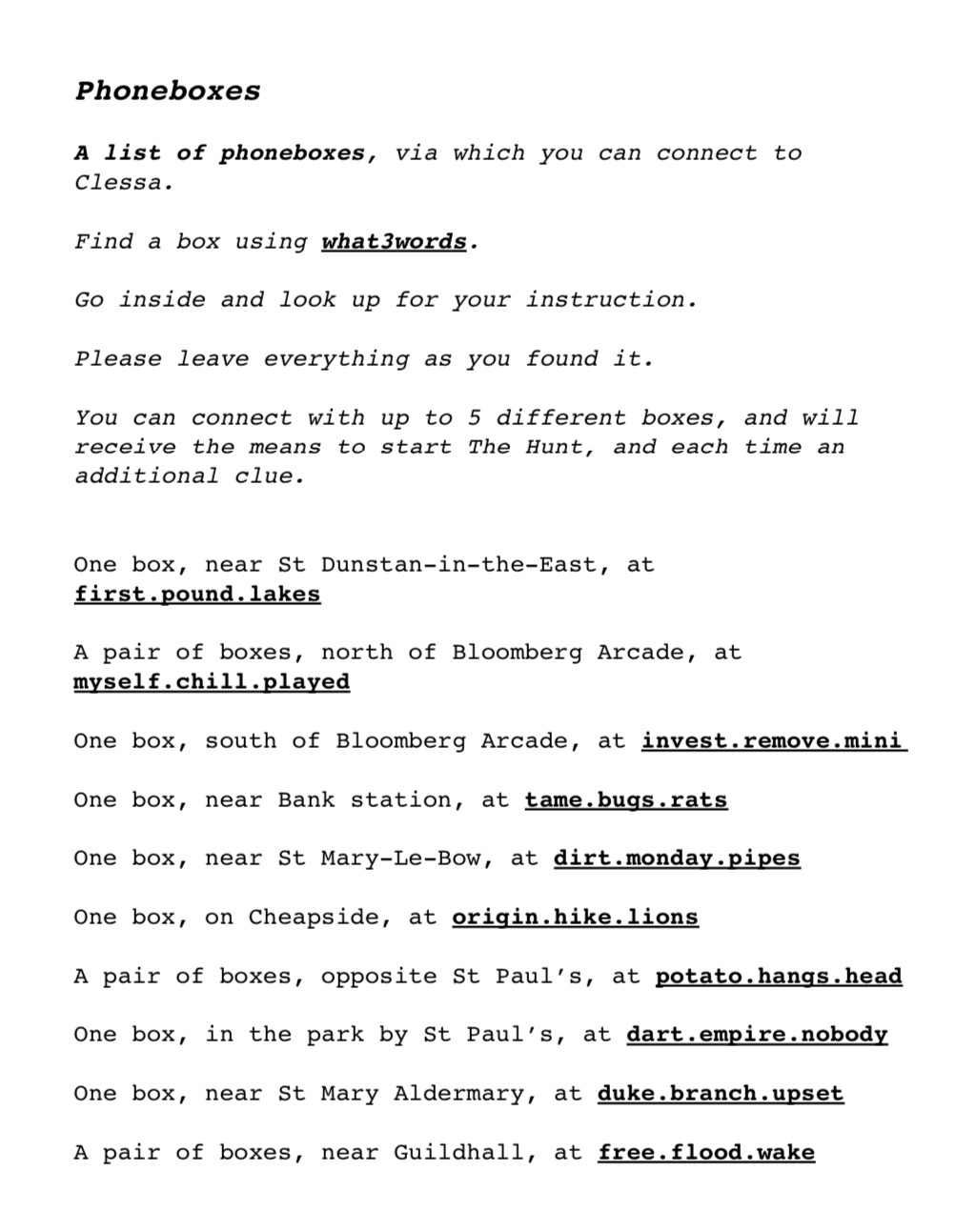 We decided to go with The Hunt as the concept seemed more challenging and interesting so we aimed with absolutely no knowledge of the start point – Instead we joined at Bank where one of the allocated Phone Boxes.