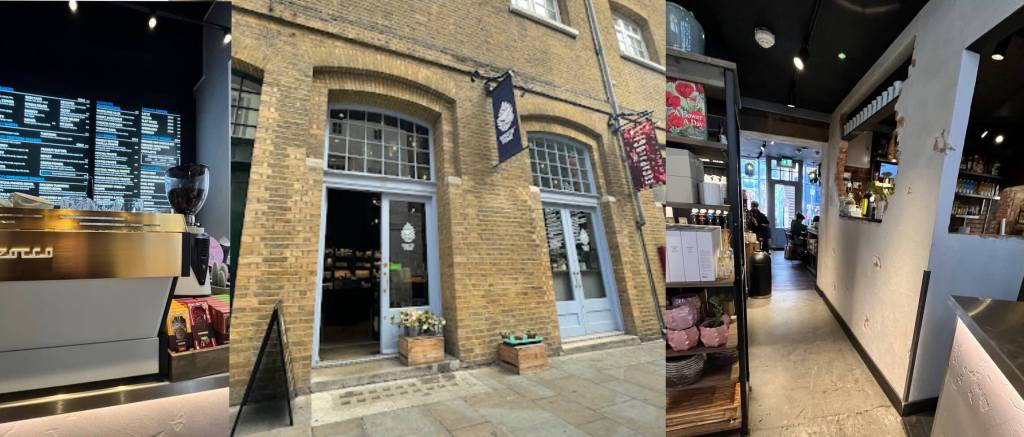 While wandering around Covent Garden the other day we tried to find a little, indy, Coffee Shop and we came across two, the first was St. John’s in the lovely courtyard of Neal’s Yard, the yard is a lot more trendy than it used to be, when Vegan was an oddity and the whole space was filled with weird shops and cafés, but in the corner is a little bakers and the coffee prices looked good and the cups OK. But when we asked for an Oat Mocha, we soon discovered it wasn’t as pleasing as it seemed. The response we got was.