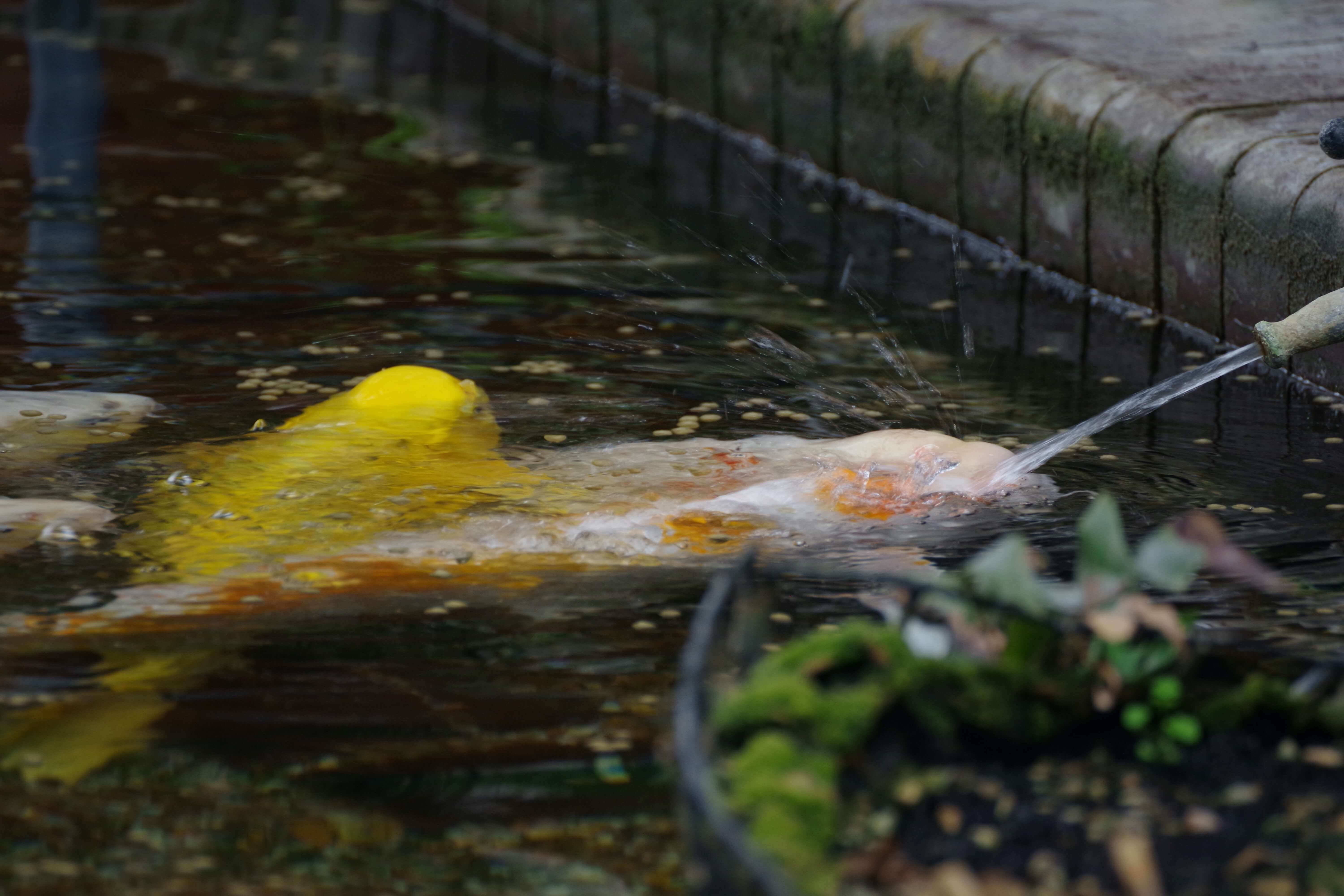 The highlights though were to be found at the back and they weren’t flowers, but fish, a pond of large Koi and Mirror Carp swam lazily around, eating the Boilie Food and floating under the water pipe that sprayed them with fresh cascades into the pool.