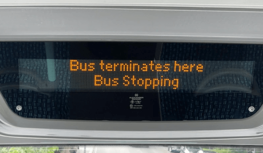 6! (We assure you this isn’t a loaded die!) We headed to the bus stop and waited for a number 87. And we waited and waited and waited and waited. 25 minutes in all. But we got on to go the full distance of 6 stops, – we could have walked it in the time we waited, but that wasn’t the idea. The bus set off, one stop, two stops.