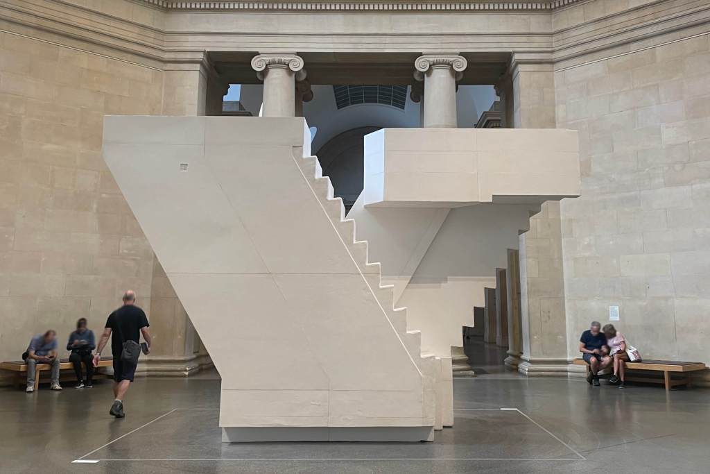 Well, we found Rachel Whiteread Stairs and some other interesting pieces, but overall there is a lot of Modern Art that is, well for another time, we were here for Coffee, but we did tour the ground floor and the Turner exhibit first, which was worthwhile and the Hogarth Room too, but then we found The rather pretentiously named Djanogly Café and you can see what we thought of that via the link! We took our brew on the lawn! and then decided where next to go.