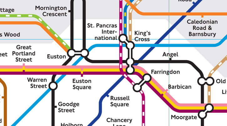 1-Hammersmith & City. 2-Circle, 3-Metropolitan, 4-Northern, 5-Piccadilly, 6-Victoria.