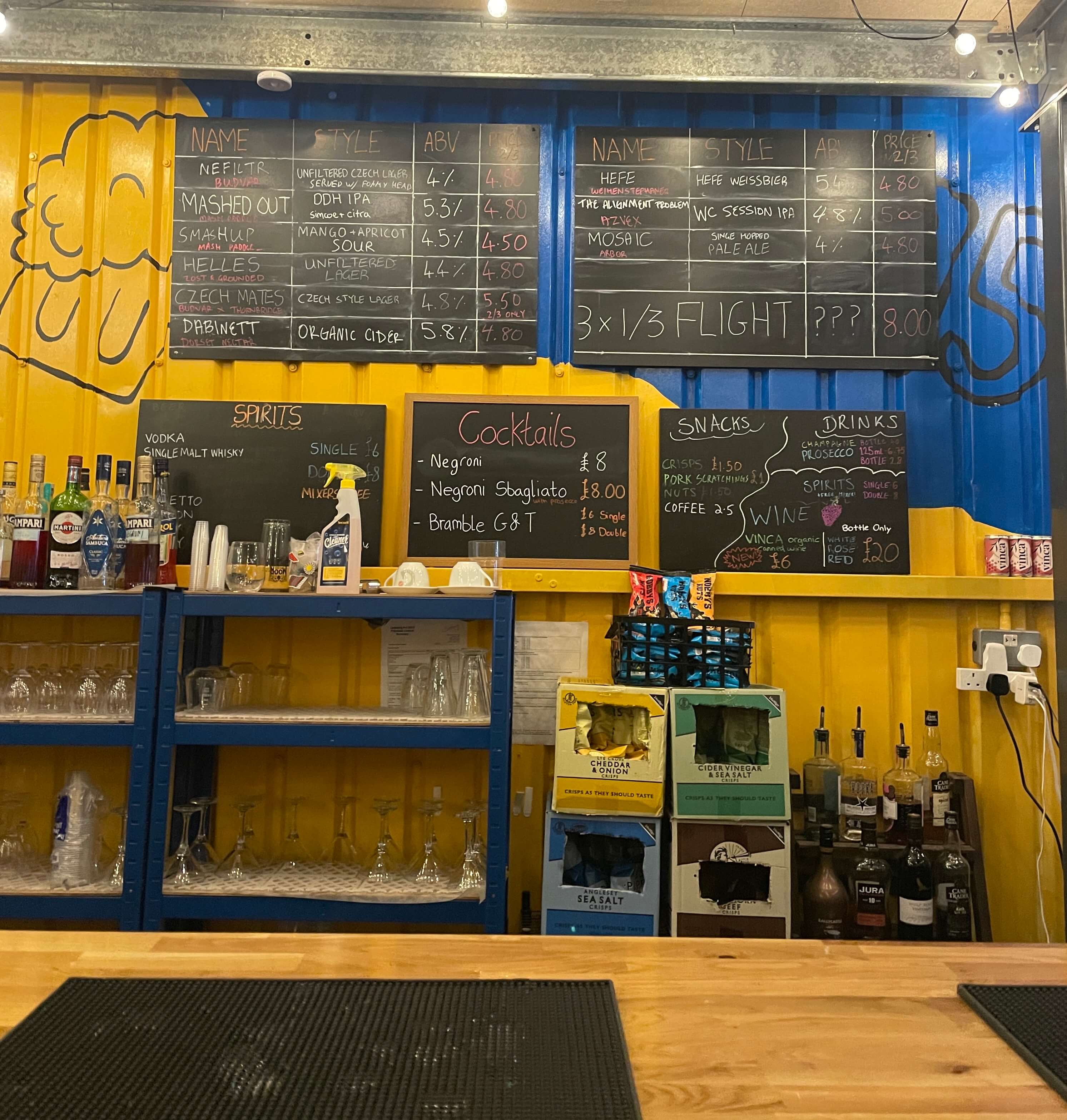 This was a bar where you could make your own brew – so half is blocked off. The other half is yellow and blue with a couple of games that you could play running along the sides.