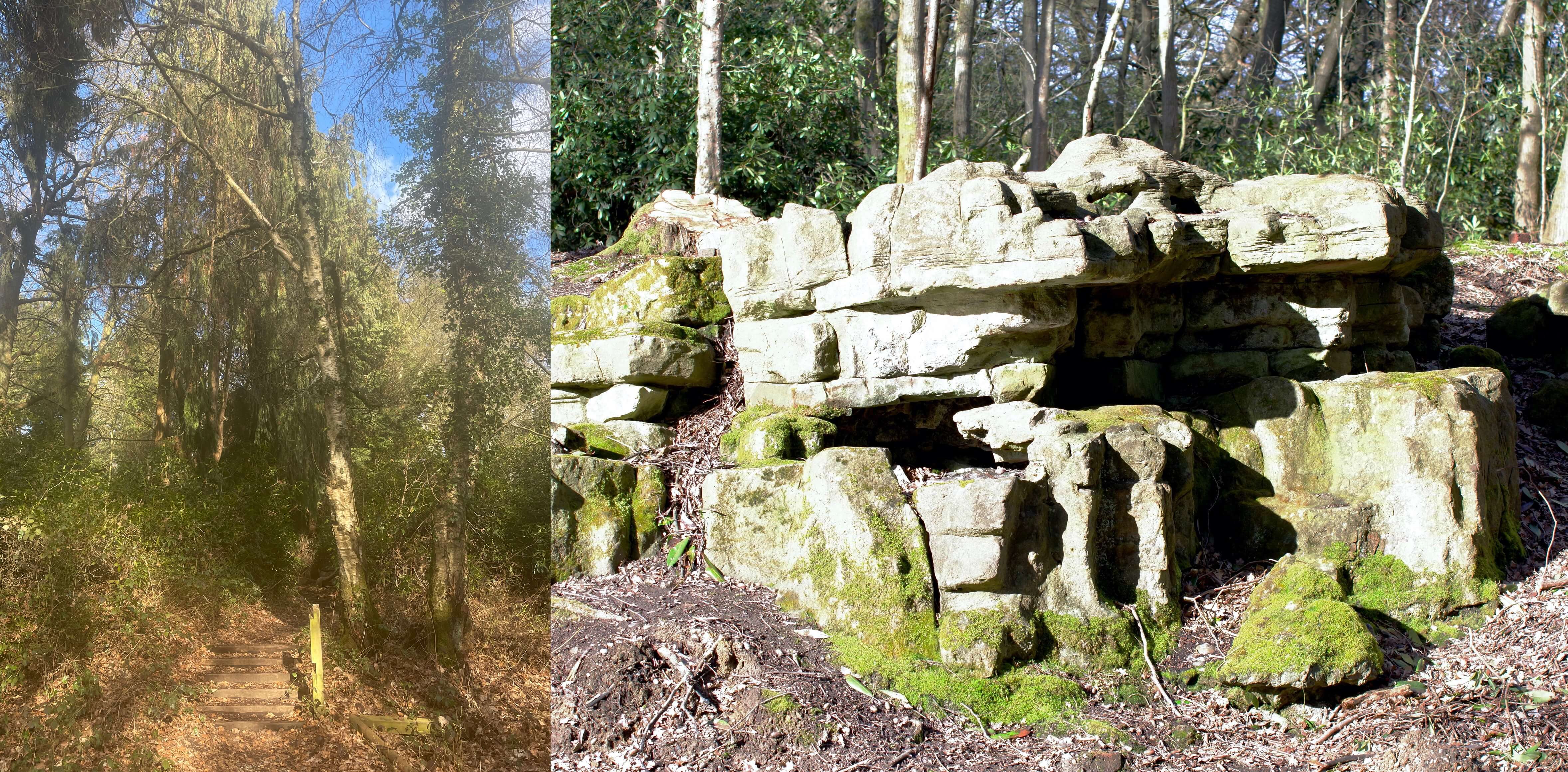 Follow the Ass House and take another footpath up and into the woods, to find Gilbert’s Lake, a large electrical pylon and a thick woods. The forest is again quite pretty and easy to manoeuvre through, by following the tracks.