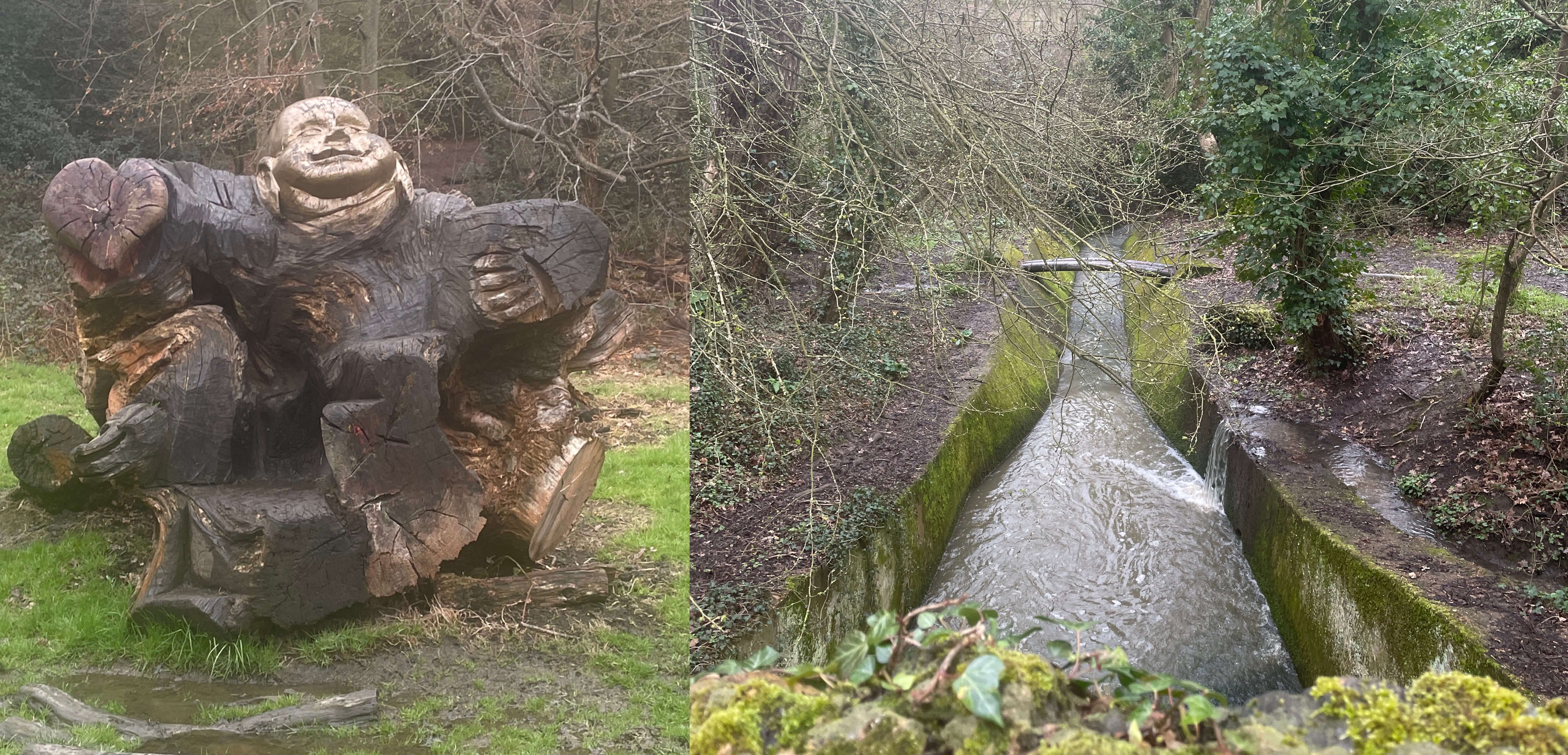We walked down the long path around the flooded lake and all the way through the woods pass some very strange sculptures of Buddha. This area is probably lovely any other time and we have vowed to return in nicer weather. At the eastern end leave the woods and follow private roads and side roads, avoid the main CockFosters road and finally get to Cockfosters Station at the end of the Piccadilly Line and go home.