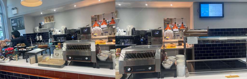 There was 9 members of staff doing not a lot – we ordered the usual Americano (which was so ridiculously sour as to be unfunny) and an Oat Milk Mocha (which even though we stated OAT 5 times! Still came as normal milk) The Staff were unbothered but I suppose they seemed to be on a training day so maybe that’s why they haven’t mastered the art of coffee making (or listening).