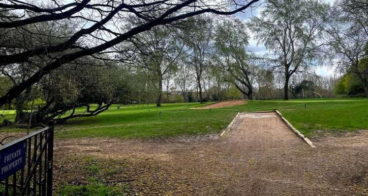 Alongside some sports grounds the river winds and then at Ford’s Grove you leave the worn dirt path (hopefully not a muddy one!) and walk around the little section, a right and then a left to rejoin.