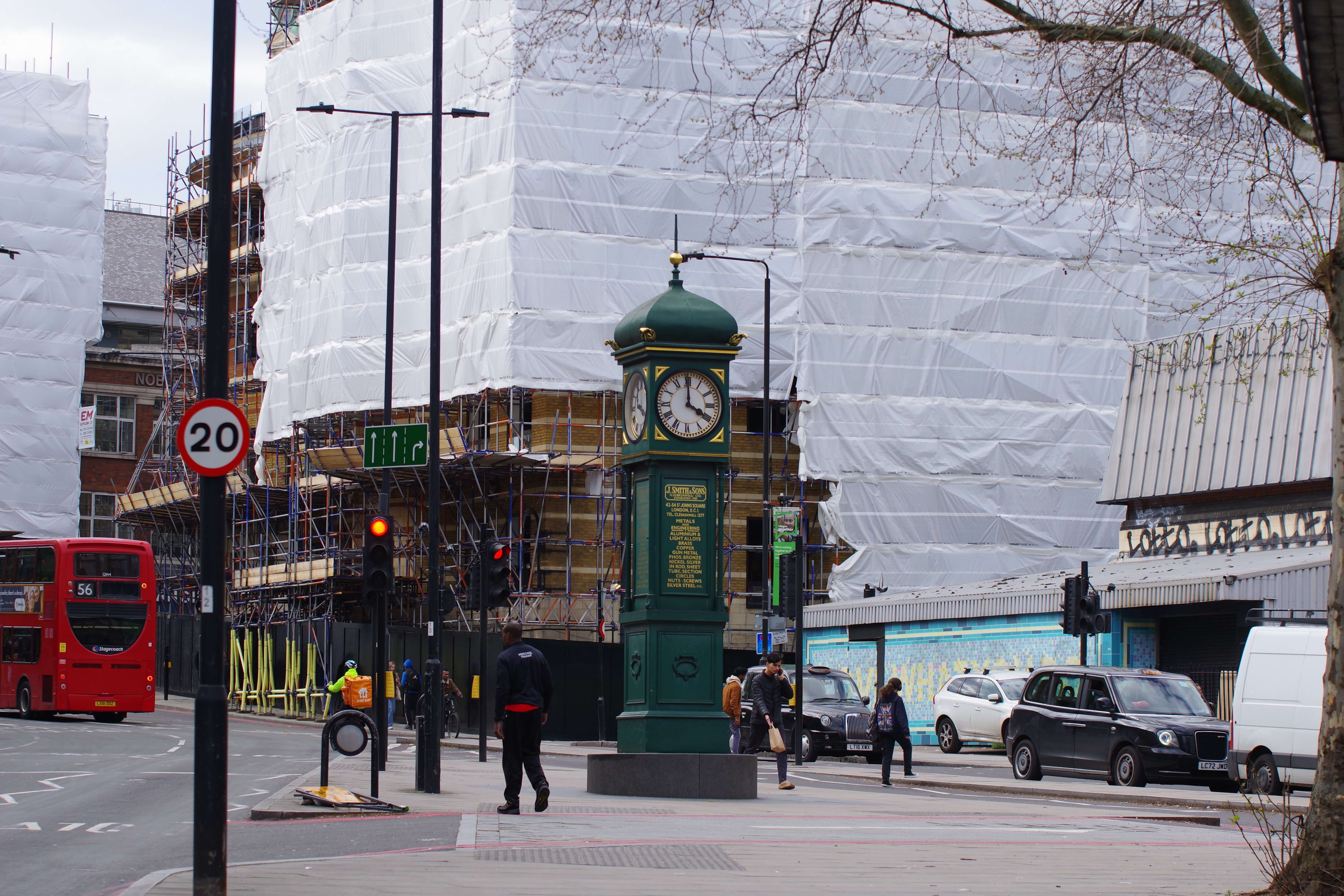 At the other end cross City Road and Goswell Road past the clock tower [A passageway opposite leads into The Red Lion Theatre pub whose main entrance is on St. John’s Street for when you leave!]
