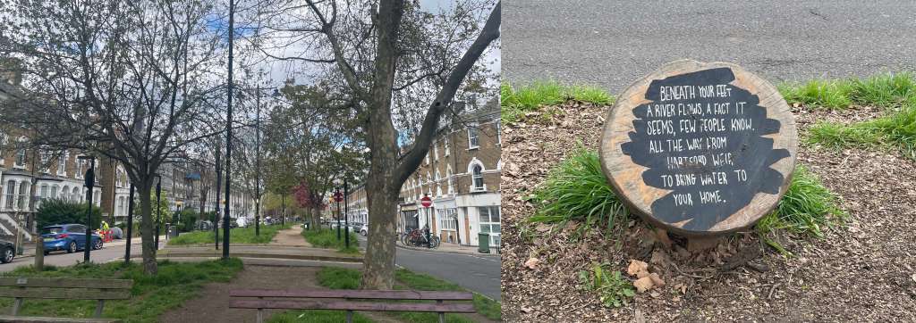 Cross New North Road and follow Astey’s Row Gardens where the water once more vanishes under-ground. Emerge at the end onto Essex Road, turn right and follow the main A104 road west [a brief stop in The Alpaca is called for a really nice pub, now it is no longer The Rose!]