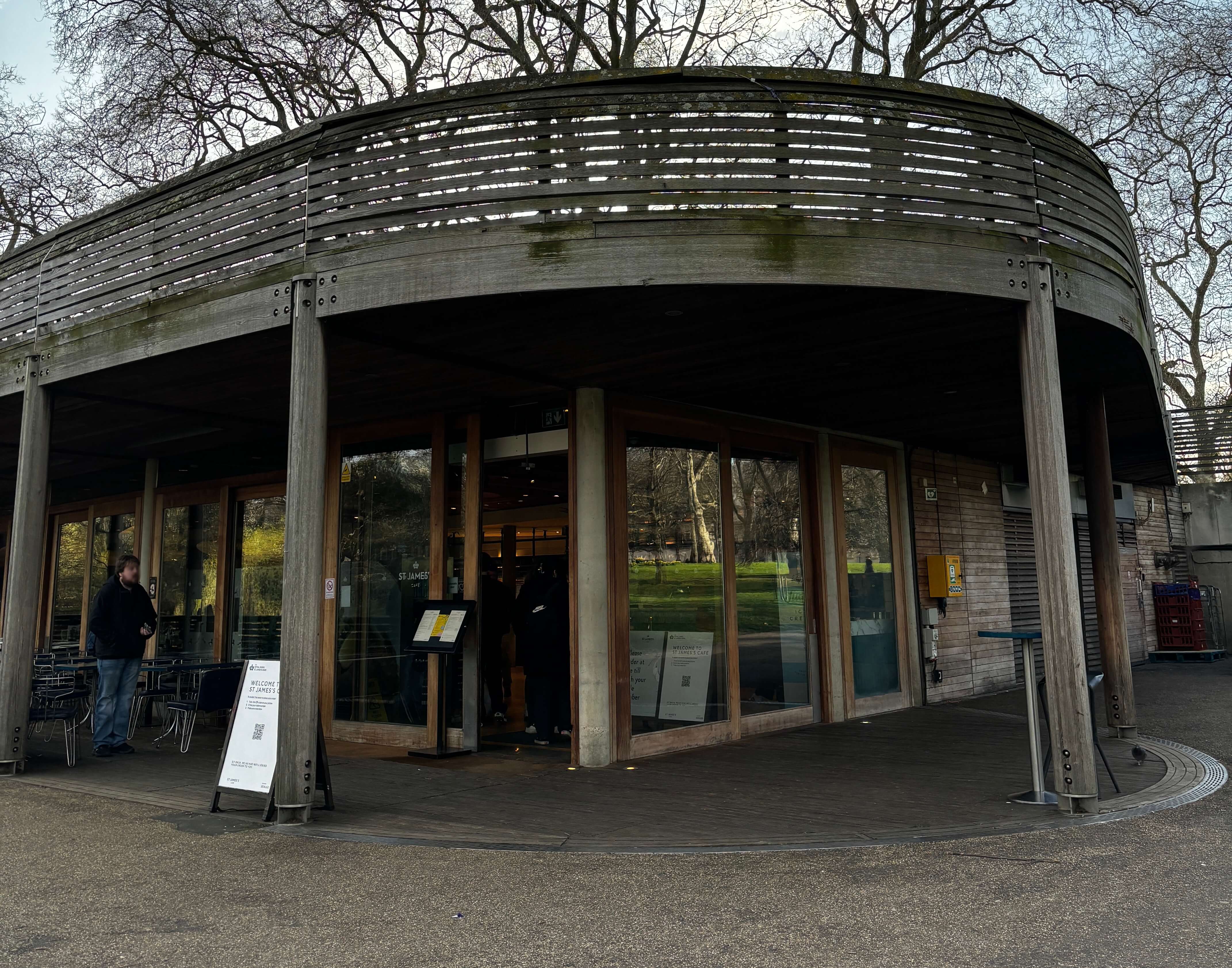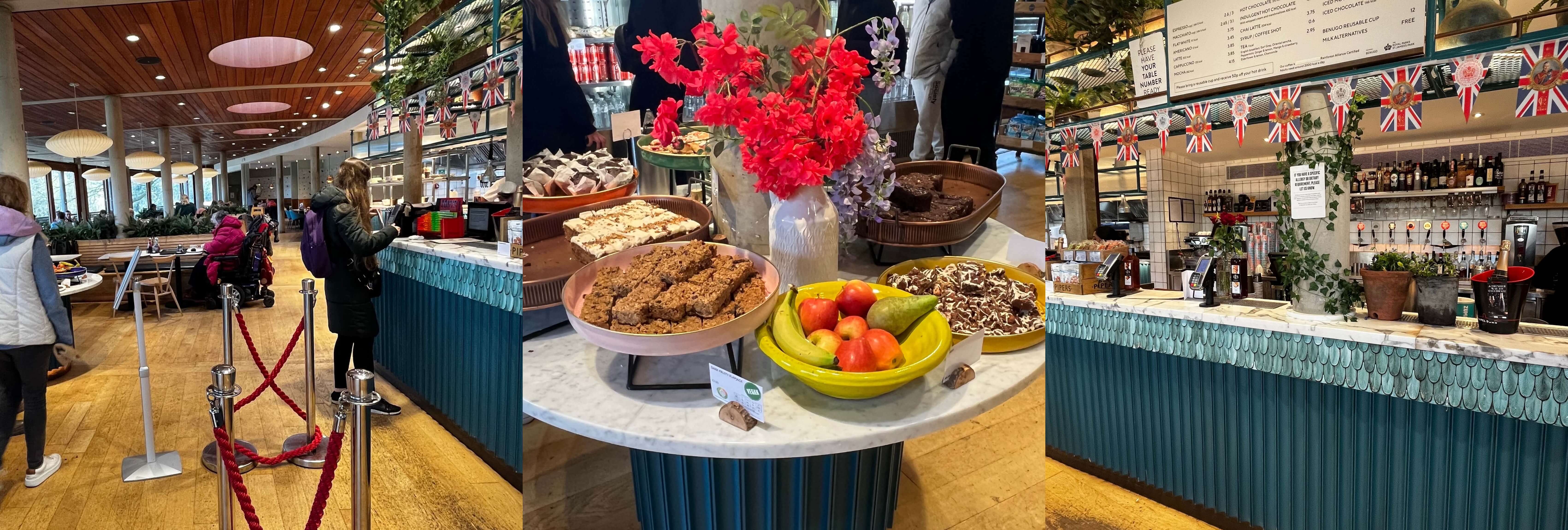 By the lake in the midst of St. James’ Park is a large Restaurant, a massive seating area with a small serving area and Large fridges, it’s full of tourists looking baffled at the selection of chilled foods near the tills and the order point is confusing, the main reason we chose here was that Colicci shuts at 4pm but stops serving coffee at 3pm and we wanted coffee at 3:06pm (the first down side to our favourite chain!)