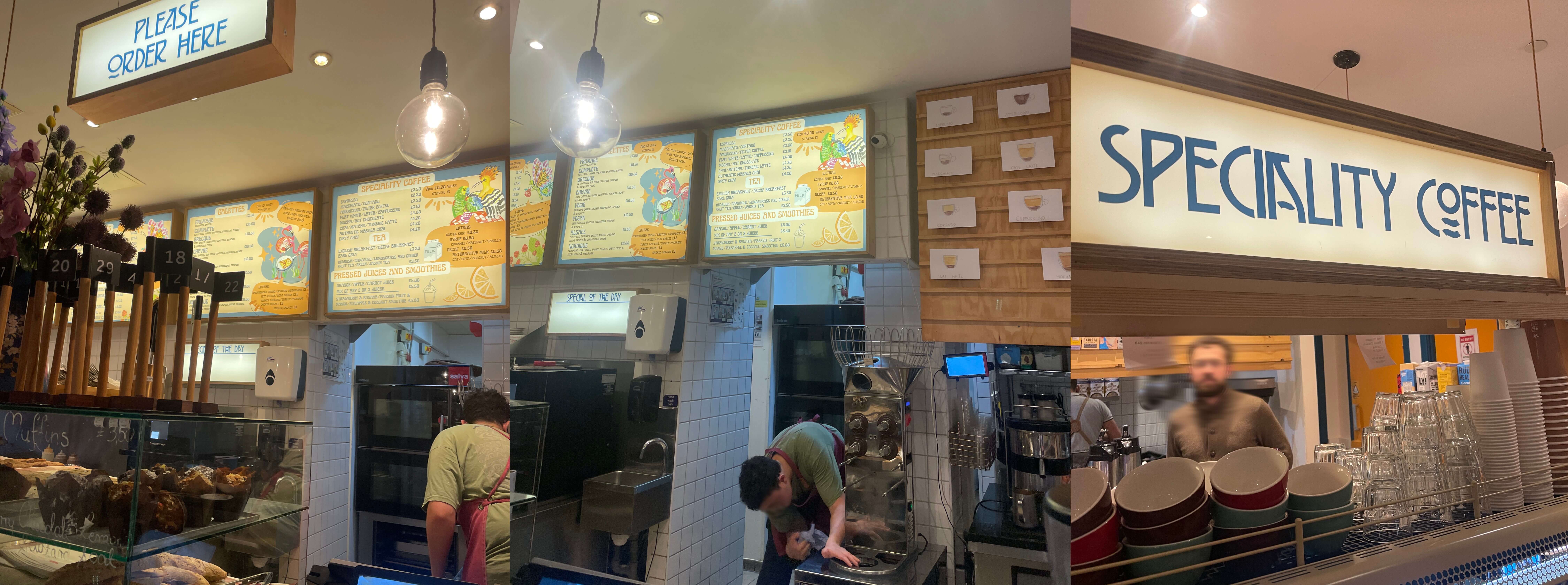 A popular Artisan bakers with (thankfully) non Artisan sized cups. A busy Sourdough bakers (apparently) and a French chain at that!
