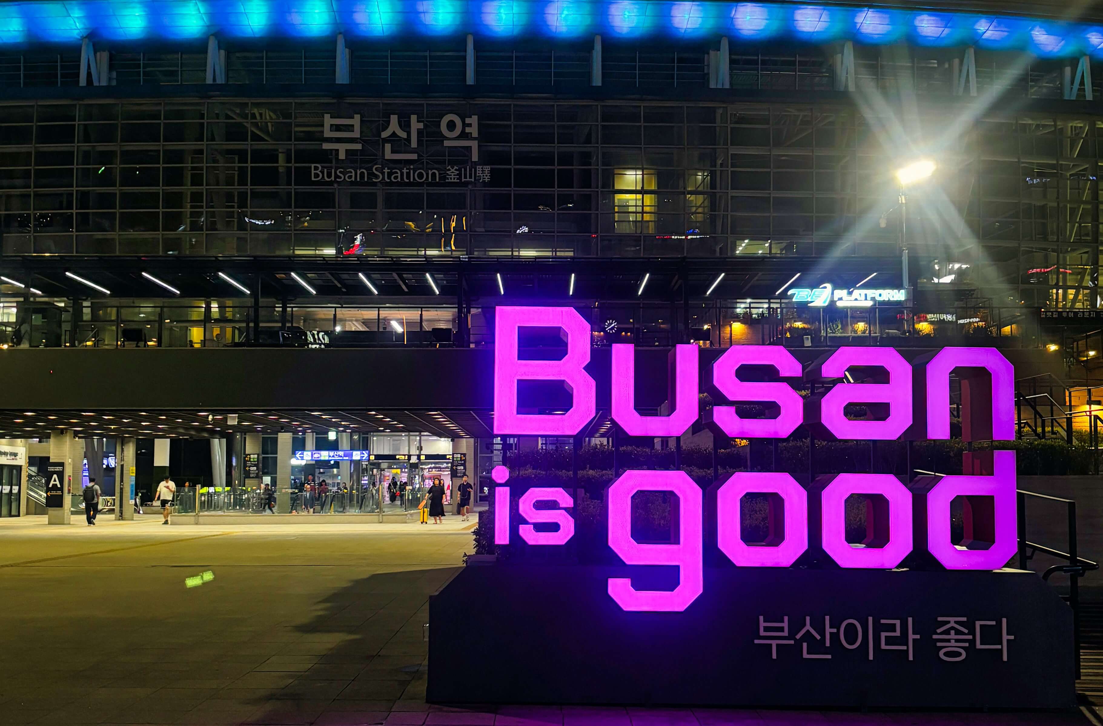 By 10.30pm we were out of the station and exiting Busan Station to the sight of the neon and bright lights of Korea’s 2nd largest City and our new home for four nights.