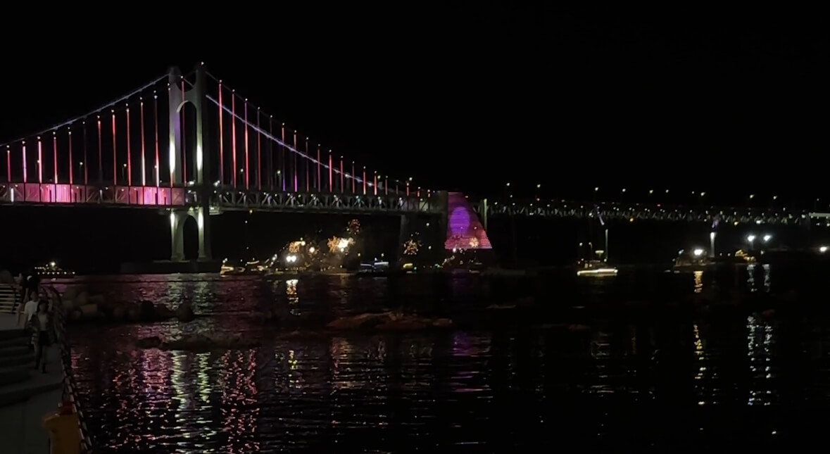 Anyway after this we took a walk and followed the crowds along the strange waterfront, there is no beach here only a concrete slab that runs into the water. But further on as you turn onto Gwangalli Beach the typical beach views come into sight as well as Gwangan Bridge which at night is illuminated with a show of multicoloured lights and fireworks. We watched and did a bit of souvenir shopping before getting the bus and heading back to the BS Hotel!