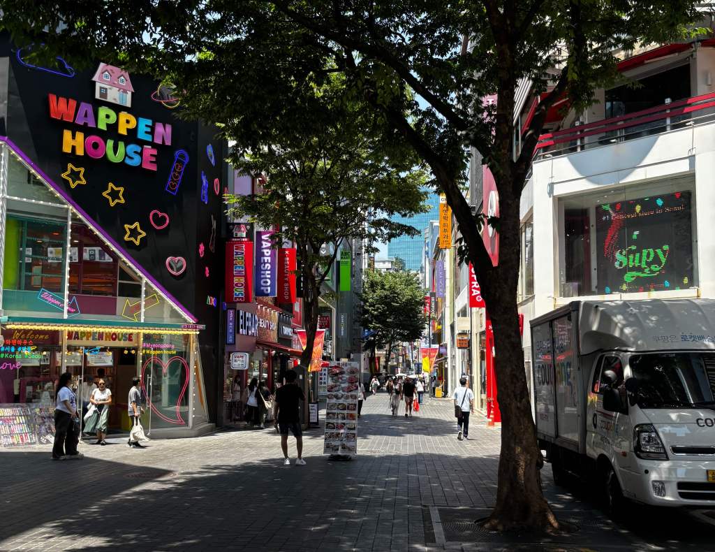 We emerged up the flights of stairs to find ourselves in the Area of Hongdae and walked down the main road to find our accommodation for the week.