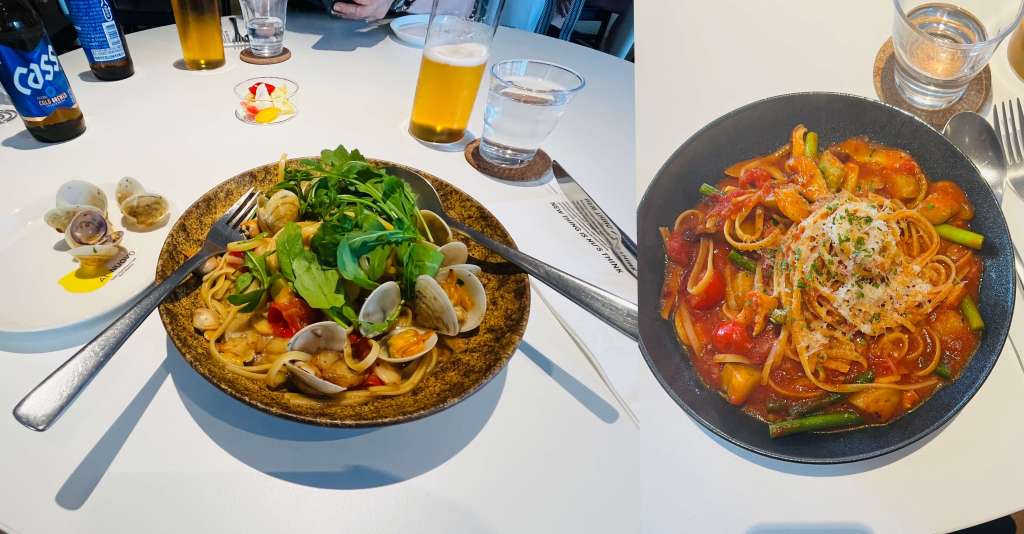 We ordered Mushroom Pasta, 2 Tomato soft stew, Korean Mixed rice with tofu and we got some free side dishes and finally a Vegan place that sold alcoholic beer! We did feel a bit rushed due to the queue outside that seemed to get bigger every time we looked up with hungry eyes judging what dish to get.