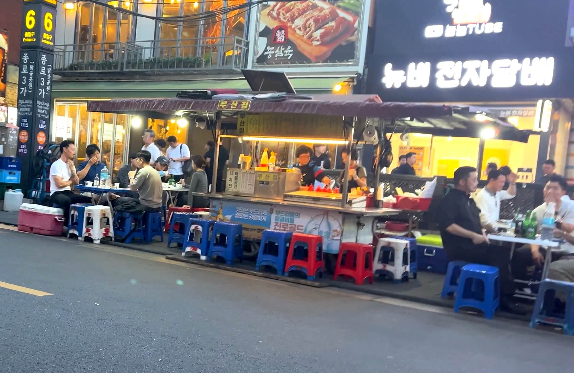 We went all along Pojangmacha Street lead by our friend (A Local) and sat at one of the tables at the one sat at 10.12.4 – we ordered Tteokbokki and Kimchi Jeon. Both of which were yummy and we got some beers and Soju’s for the table.