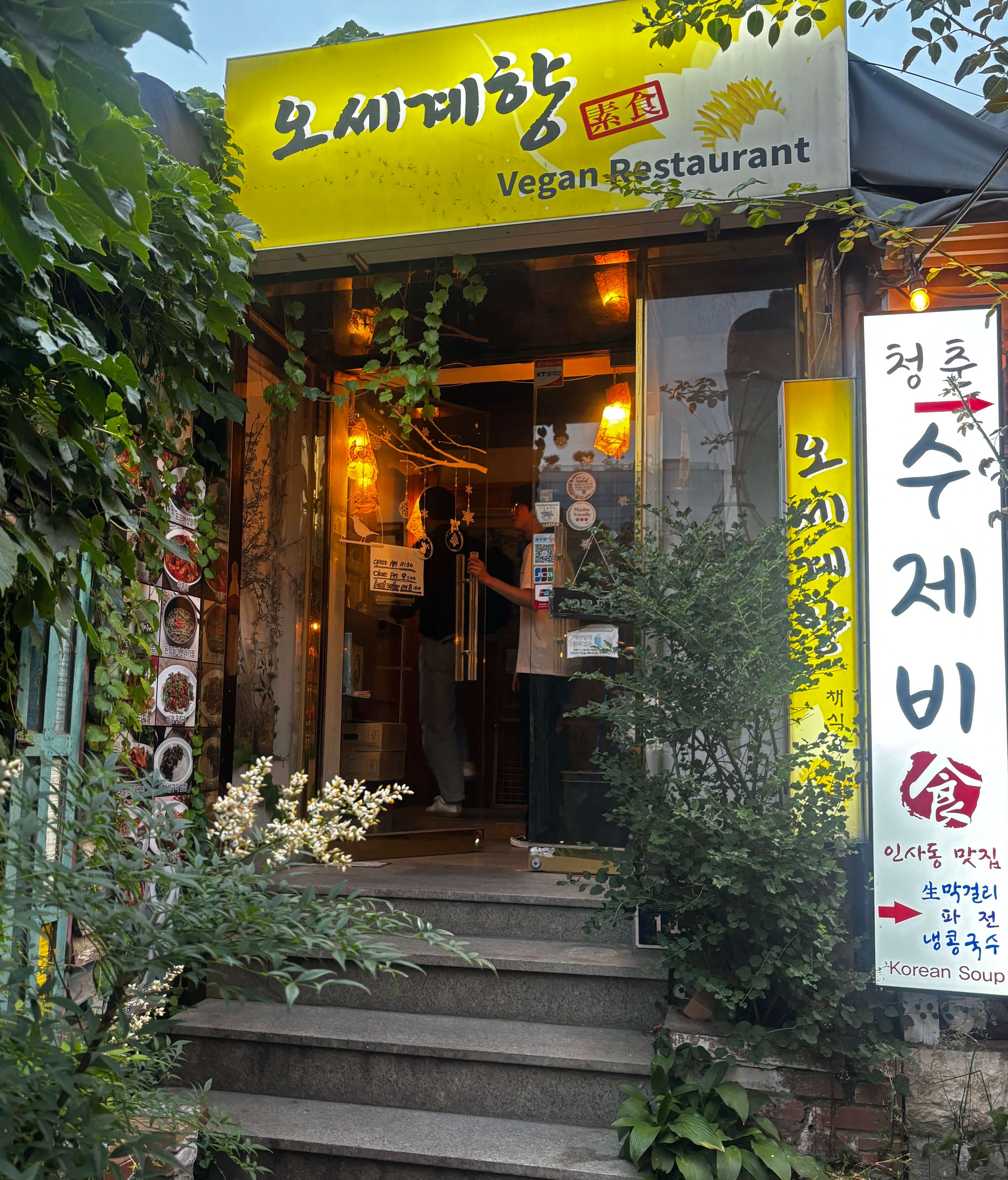 After a long day walking around the Palaces and rushing back to the Hanbok shop we went of searching for another Vegan Restaurant in the local area.
