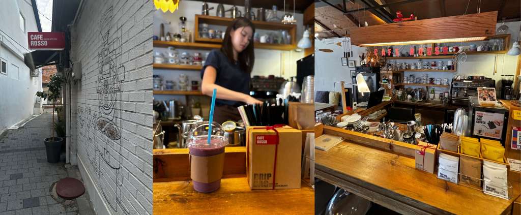 The staff were really grumpy and seemed upset that we broke up their chat – but took our order. The cups were really small (not england small, but Korea small!) That being said the coffee’s were really good!