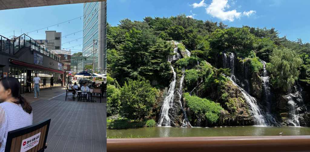 The coffee shop underneath the motorway with a Beautiful View of the artificial Hongjecheon Waterfall. We clearly shouldn’t have picked Sunday morning to see this as the place was absolutely packed! We ordered and waited around for 20mins at least for our drinks. Although there seemed to be loads of staff there seemed to be only one person making drinks who looked very much like IU.