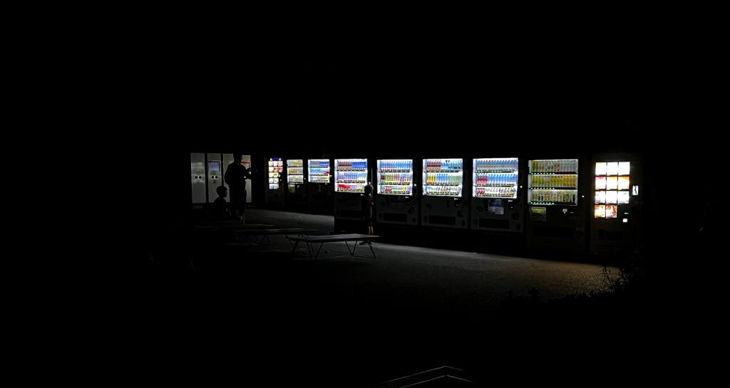 But eventually we made it to the top of the mountain -technically – it turns out there is a different ‘Top’ up a different path, which may have been 10 metres higher, but by then we didn’t care, we were knackered it was about 8pm, everything else was shut and we still had to get down and get back to Osaka. We started back down, taking a moment to thank the god of Vending Machines – even though the cost was about 10 times more expensive than any other we found – and we found a lot of vending machines! – but we appreciated the Vending Machine Operator who climbed all the way up the mountain to restock the machines each week.