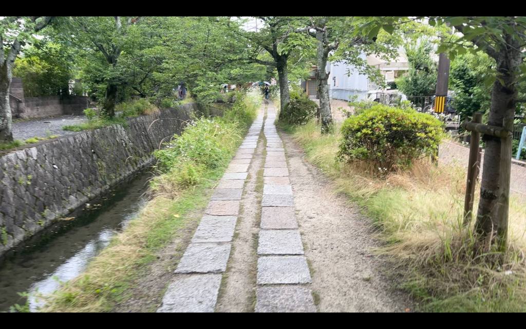 So we gave up on the park and got a bus or two to the NorthEast, one point to note is that the famous Gion Section of Kyoto is closed to tourists, completely closed off, buses will not let people off and anyone found in the sector (anyone that’s not a local that is) will be arrested and put in prison. So we headed instead to Tetsugaku No Michi – The Philosopher’s Path, a small, shallow stream that runs across the city, it’s said to be a beautiful, tranquil and timelss path where the ancient Philosopher’s walked in contemplation – probably contemplating how to rip off tourists with cheap crap and overpriced junk, because the entire path is filled with just that, shops selling intentionally badly spelt t-shirts, Artisan Coffee, we even saw a Costa Coffee, Shops selling tiny bottles of Saki and paper fans all made in China! The potteries and and craft stores are all owned by people who don’t live in Kyoto but commute there from Osaka daily! And don’t forget EVERYTHING shuts at 4pm, the Temples, Palaces, Shops, Restaurants and even roads are all locked up and empty before early evening.
