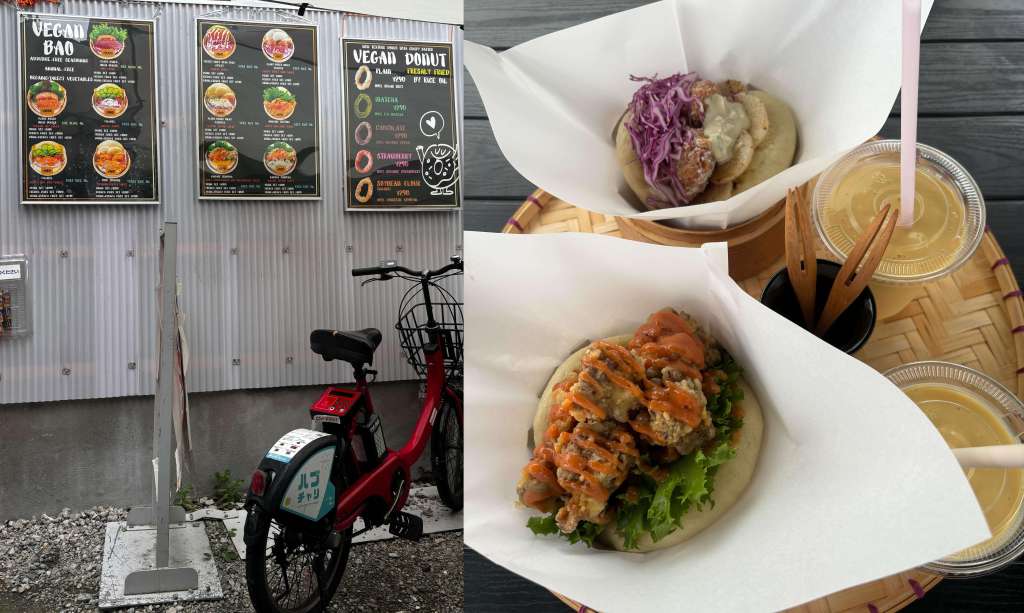Whilst in DenDen looking in all the anime shops, we saw “Vegan Bao” Yay vegan! We ordered two different things and sat in a car park, as that was ultimately what the shop was – A small Cargo container with food and a few seats and tables and of course random abandoned bikes!