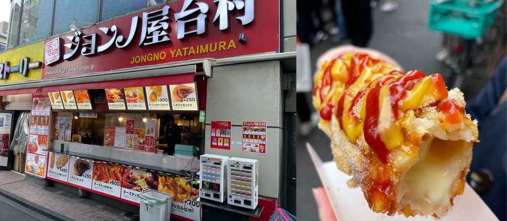 We started with a Korean Mozzarella dog from Jongno Yataimura – always a good solution to hunger and then realised there was a Chicken shop directly opposite called Nene Chicken that had a number of Veggie Options.