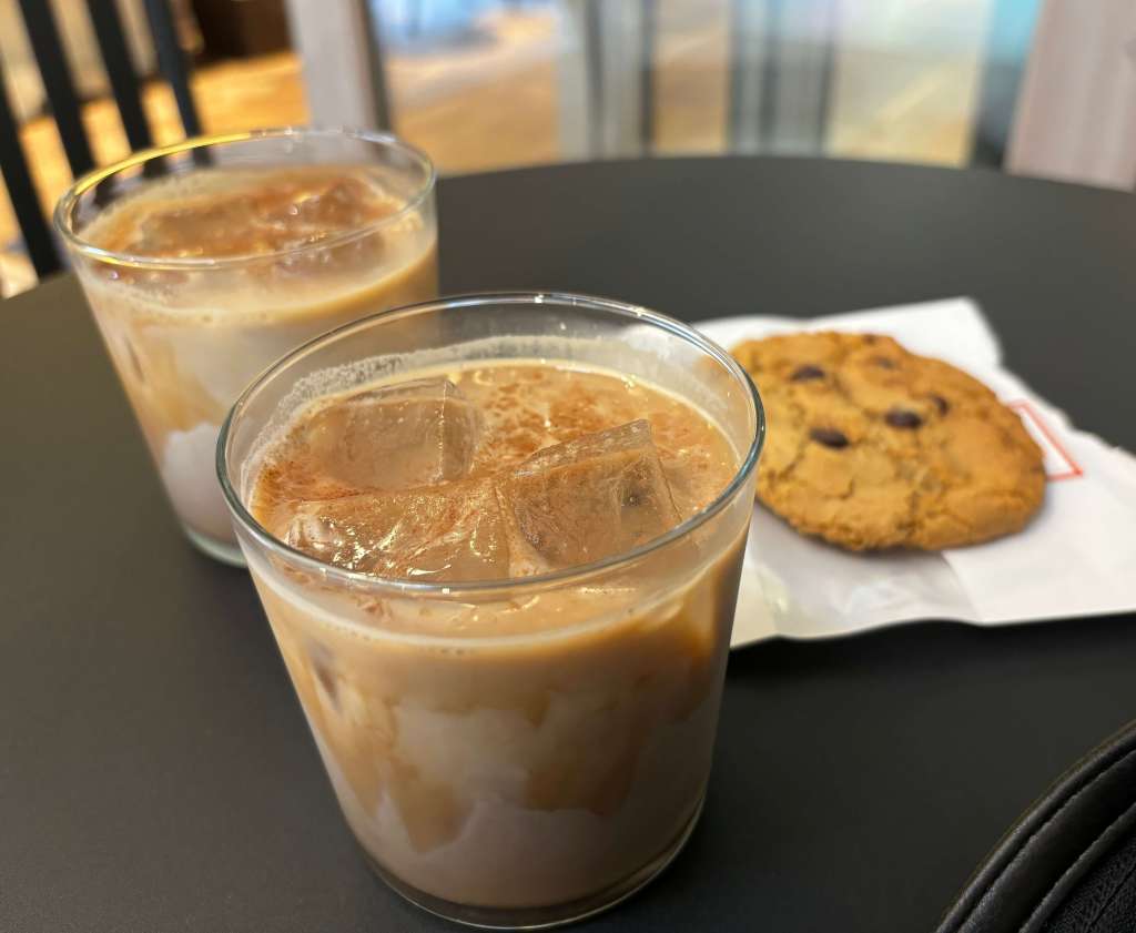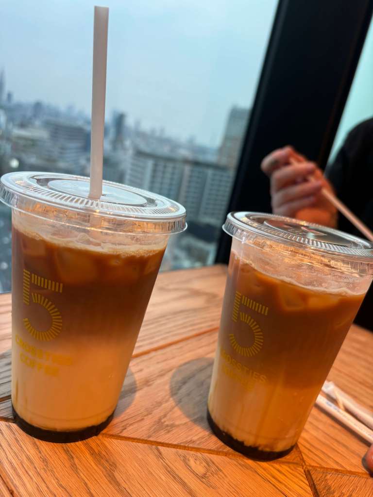 We sat with our coffee and watched over the crossing – we got two Iced Brown Sugar Oat Mochas which were pretty good. The building was clearly a business office space so there was a lot of corporate people and lunch time menus – so there was a lot more choice than seemingly anywhere else.