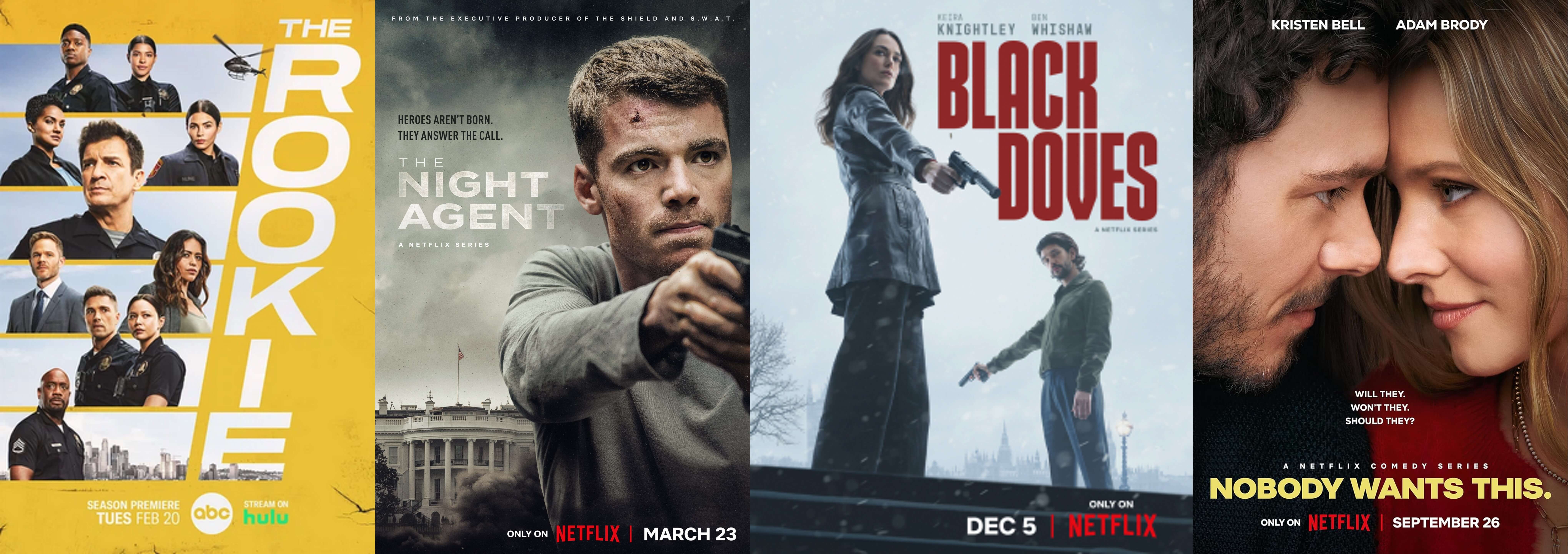 The Rookie, The Night Agent – Black Doves, Nobody Wants This.