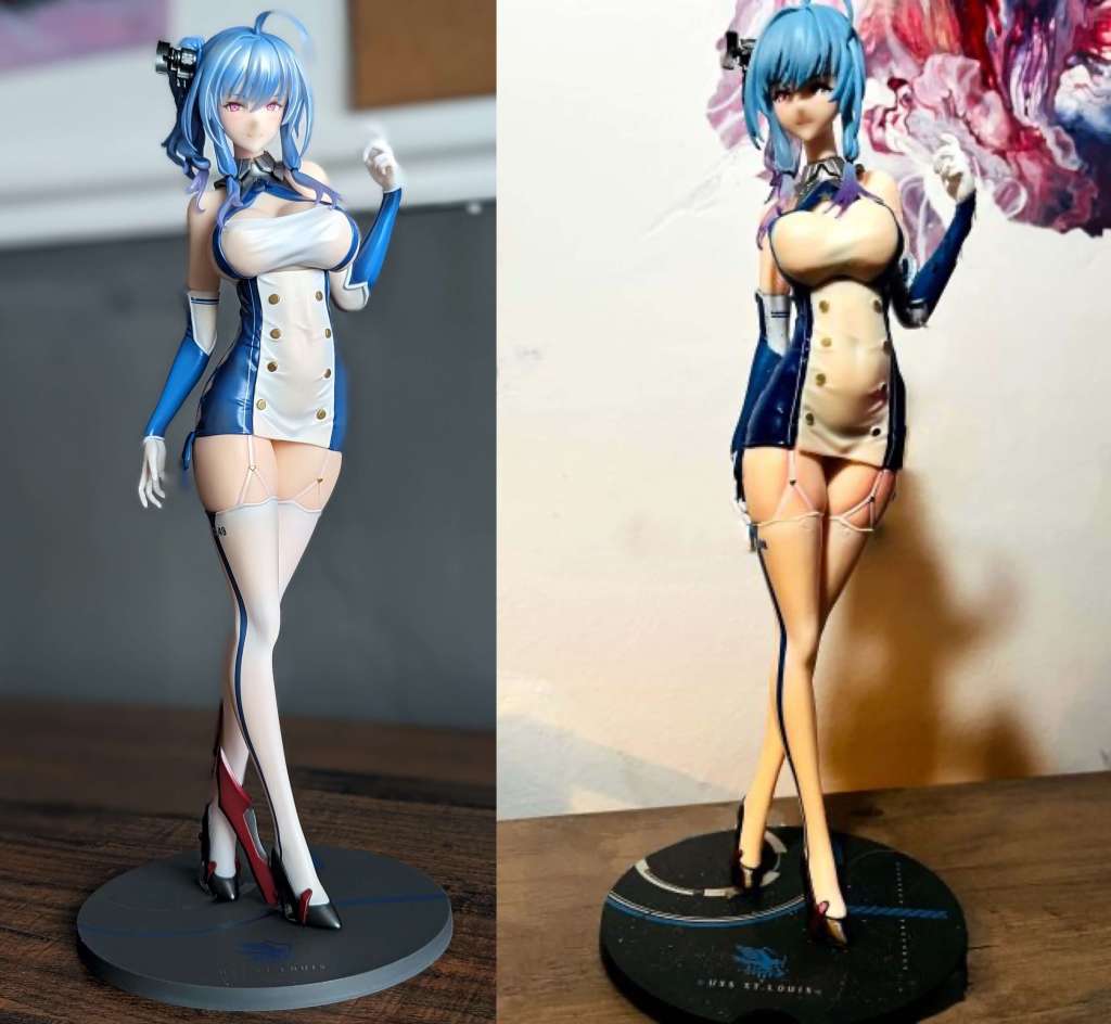 For example, one figure of St. Louis Blue from the game Azur Lane – came with the most GIGANTIC BOOBS you have ever seen and it was just weird! So Ash dismantled the torso and spent an afternoon with some 70grit sandpaper sanding down her figure before cutting and sculpting her costume to fit the new lighter DD cup bust instead of her original ridiculous Double M love pillows!!