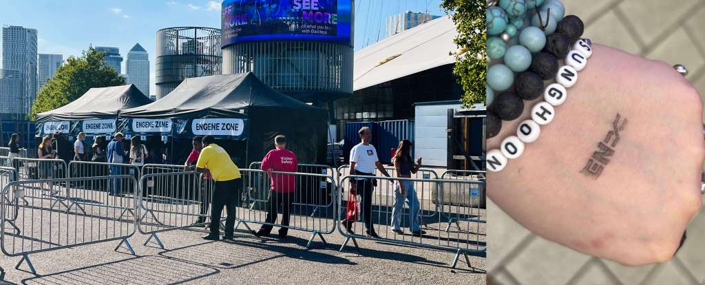 As we came out of the station the first thing we saw was a large enclosure that was for the Engene Zone (The Weverse membership) This was bought by Bob in order to get earlier access to the presale tickets in the first place.