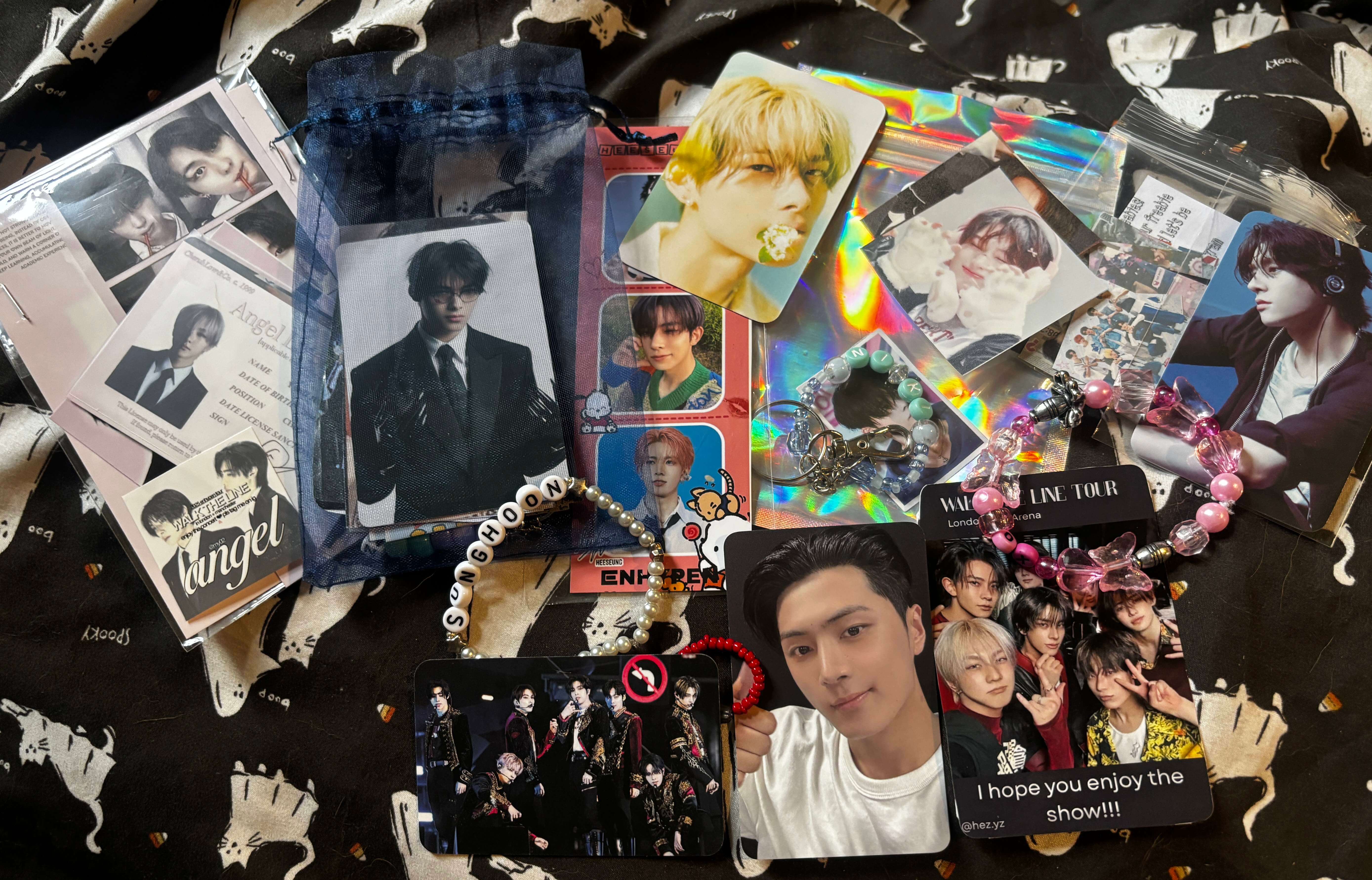 Before any KPop event there is one tradition that seems unique to the genre, ‘Freebies’ fans can spend months prior to the gig making bracelets, badges, printing photo cards and all sorts to give away to the other random strangers outside the venue. Literally hundreds of fans crowd around and hand out these goody bags. Bob chose to make and share a small(ish) selection of bags with bracelets, stickers and photocards, etc in. Around 60 of them. We traded a couple of the freebies with other fans doing the same and then one group approached and within literally seconds 100’s of eager and somewhat greedy fans smothered us with grabby hands trying to get at a bag of treasures, within 2 minutes the hoard had descended and taken all Bob had to offer, leaving her with a handful of returned trinkets. There is a huge difference between the fans at Enhypen and Stray Kids if anything Engenes seemed a lot friendlier, which is not the rep that the fandom carry but maybe it’s just a London thing…