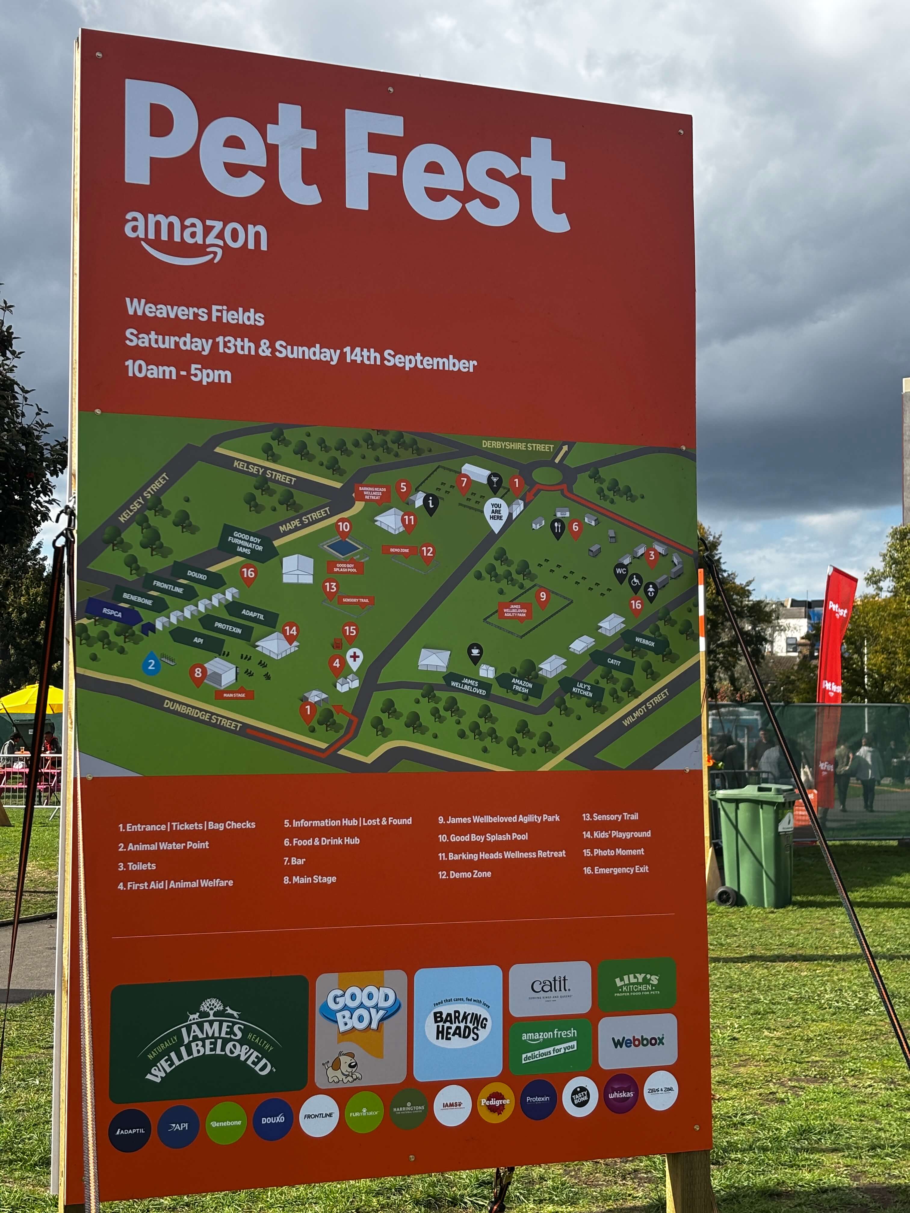 Pet Fest 2025 was not back to the rat infested location of last year, but an even more obscure park in-between Whitechapel and Bethnal Green. It’s one of those green spaces that is half hidden behind and old pub, a patch of 2nd world war waste ground, that got covered in grass and called a park. In all it’s an odd location for the biggest consumer company in the world to pick, not near either station and just a large windswept dreary bit of ground.