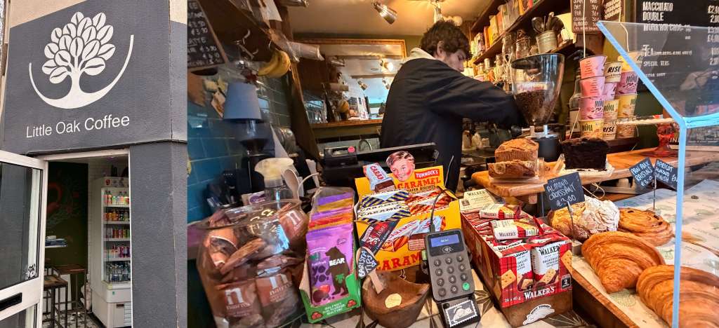 The new open Courtyard area opposite St. Giles’ Church is filled with restaurants and coffee shops, we tried Redemption and really hated their bitter, powdery coffee but opposite is a huge new Coffee Shop, on the site of the infamous Rock Bar ‘ The Intrepid Fox – (IYKYK).