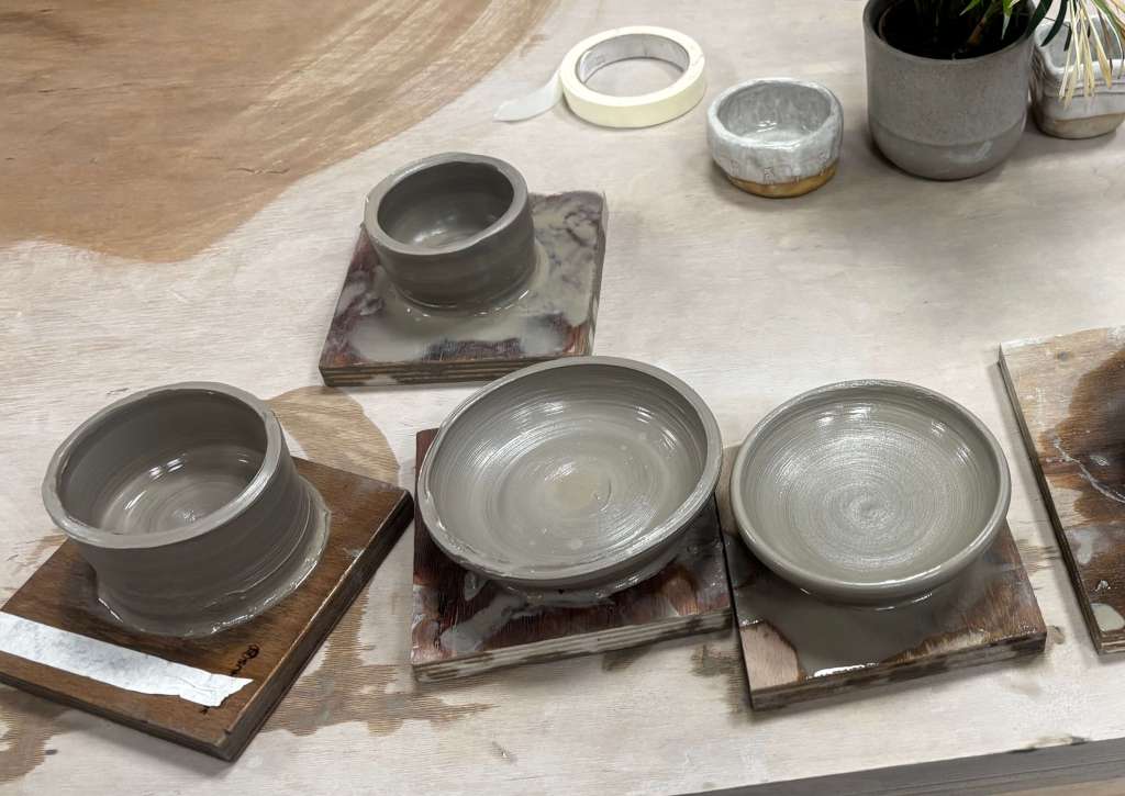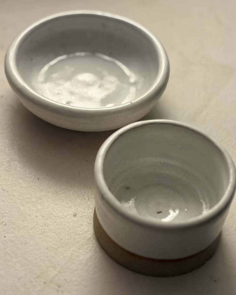 Bob made a one dish, a tiny impractical vase and a Ramekin – there wasn’t much else you could make with so little clay & time to be honest.