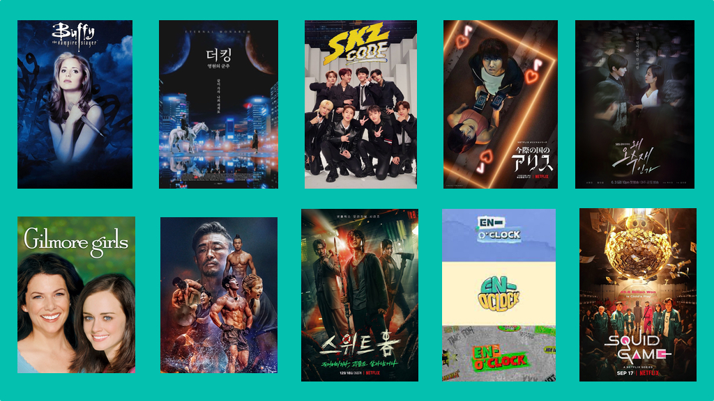 Buffy the Vampire Slayer, King Eternal, SKZ code, Alice in Borderlands, Why her, Gilmore Girls, Physical 100, Sweet Home, En-O’clock and Squid Game.